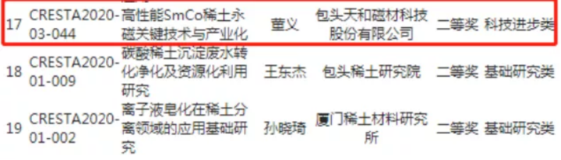 2020年12月、中國(guó)希土學(xué)會(huì)、中國(guó)希土業(yè)界協(xié)會(huì)が合同で制定した希土科學(xué)技術(shù)賞が公示されました。當(dāng)社の『高性能SmCo希土永久磁石コア技術(shù)と産業(yè)化』プロジェクトが「2020年度希土科學(xué)技術(shù)進(jìn)歩二等賞」を受賞しました。