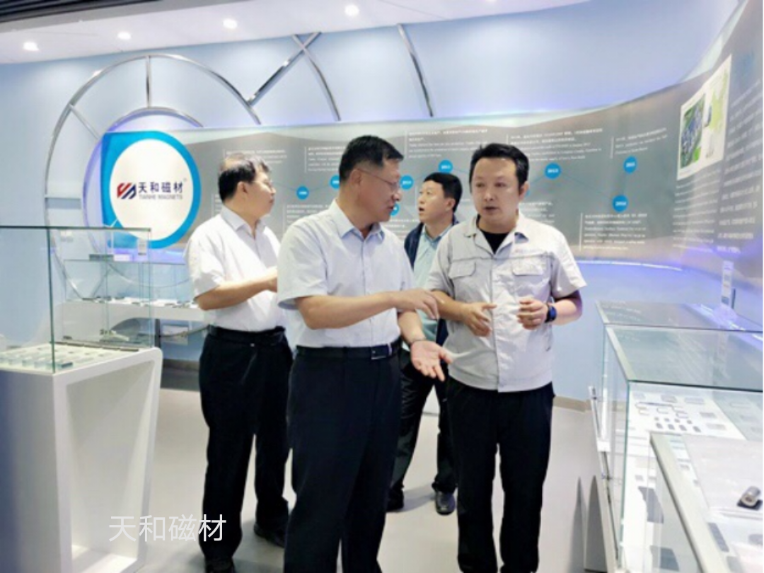 9月10日,自治區(qū)黨委外事辦副主任田占標(biāo)蒞臨天和磁材調(diào)研參觀,包頭市副市長(zhǎng)王瑞等領(lǐng)導(dǎo)陪同,生產(chǎn)部部長(zhǎng)刁樹林接待了調(diào)研組。