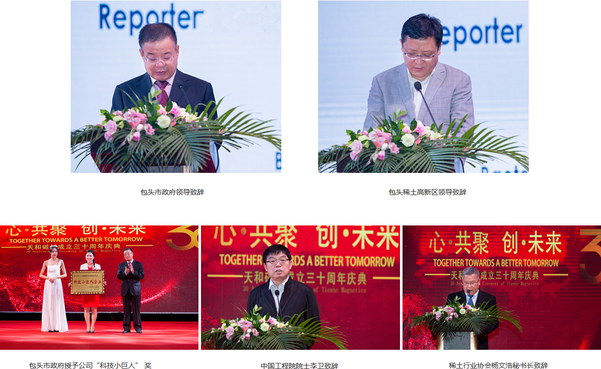 政府相關部門領導、院士、行業(yè)專家、客戶、供應商以及合作伙伴等多年來支持天和磁材發(fā)展的各界代表分別上臺致辭,對天和磁材30年來取得的成就給予肯定,并對天和磁材成立30周年表示熱烈的祝賀。
