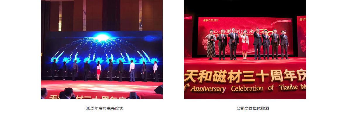 風雨同行三十載,感恩一路上并肩而行的政府領導、客戶、供應商、各界朋友以及兢兢業(yè)業(yè)工作的天和員工??偨浝黻愌叛埜鹘绱砉餐瑔討c典點亮儀式。董事長袁文杰攜公司高管、股東代表集體敬酒,共同慶祝天和磁材成立30周年。